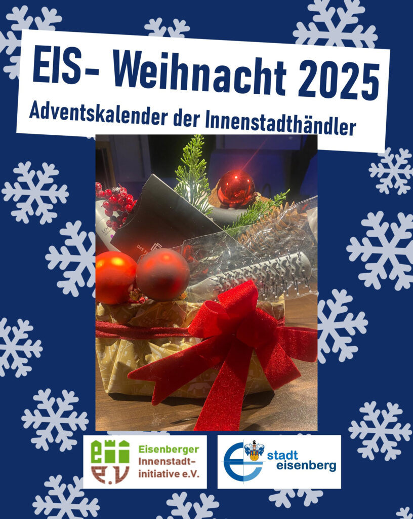 Öffnen Sie mit uns den EIS-Weihnacht-Adventskalender! Mit Ihrem Einkauf können Sie tolle Preise der Mitglieder und der Stadt Eisenberg gewinnen.