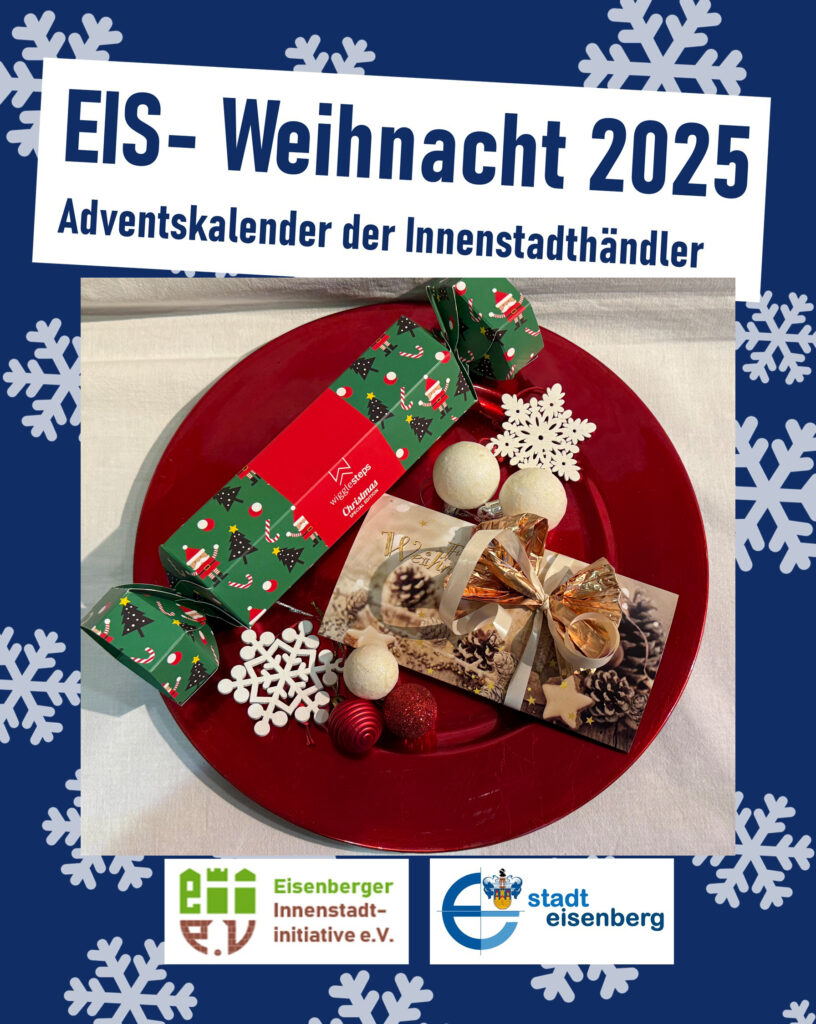 Öffnen Sie mit uns den EIS-Weihnacht-Adventskalender! Mit Ihrem Einkauf können Sie tolle Preise der Mitglieder und der Stadt Eisenberg gewinnen.
