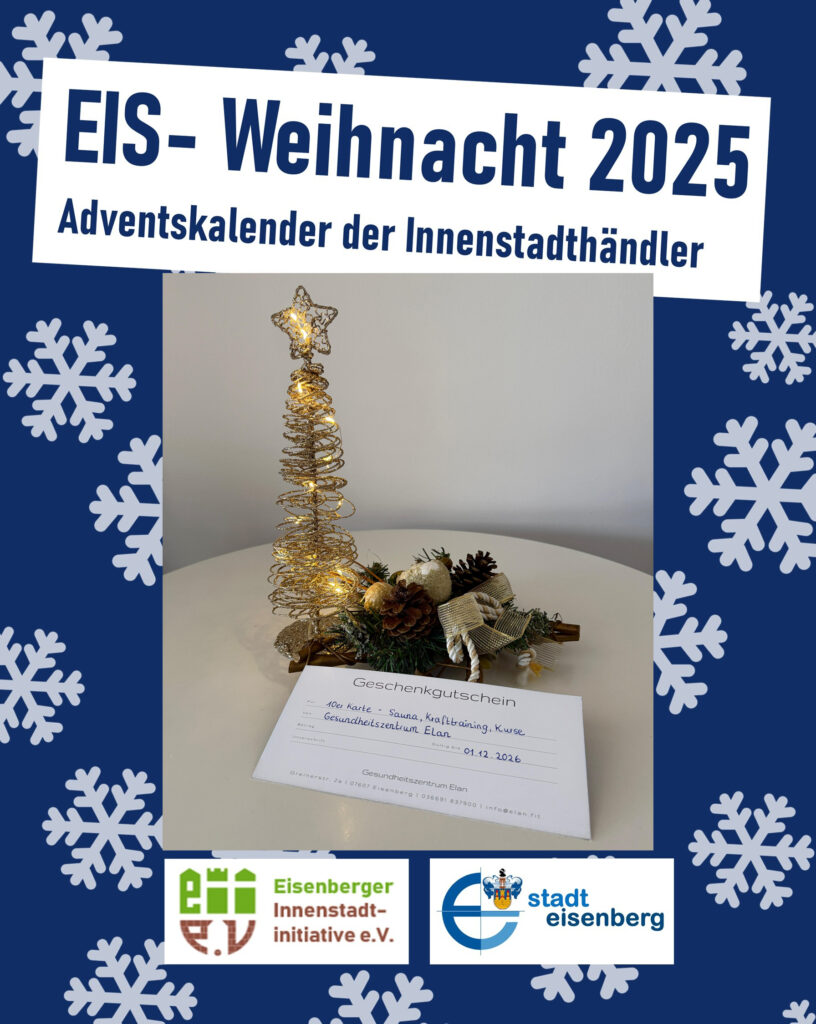 Öffnen Sie mit uns den EIS-Weihnacht-Adventskalender! Mit Ihrem Einkauf können Sie tolle Preise der Mitglieder und der Stadt Eisenberg gewinnen.